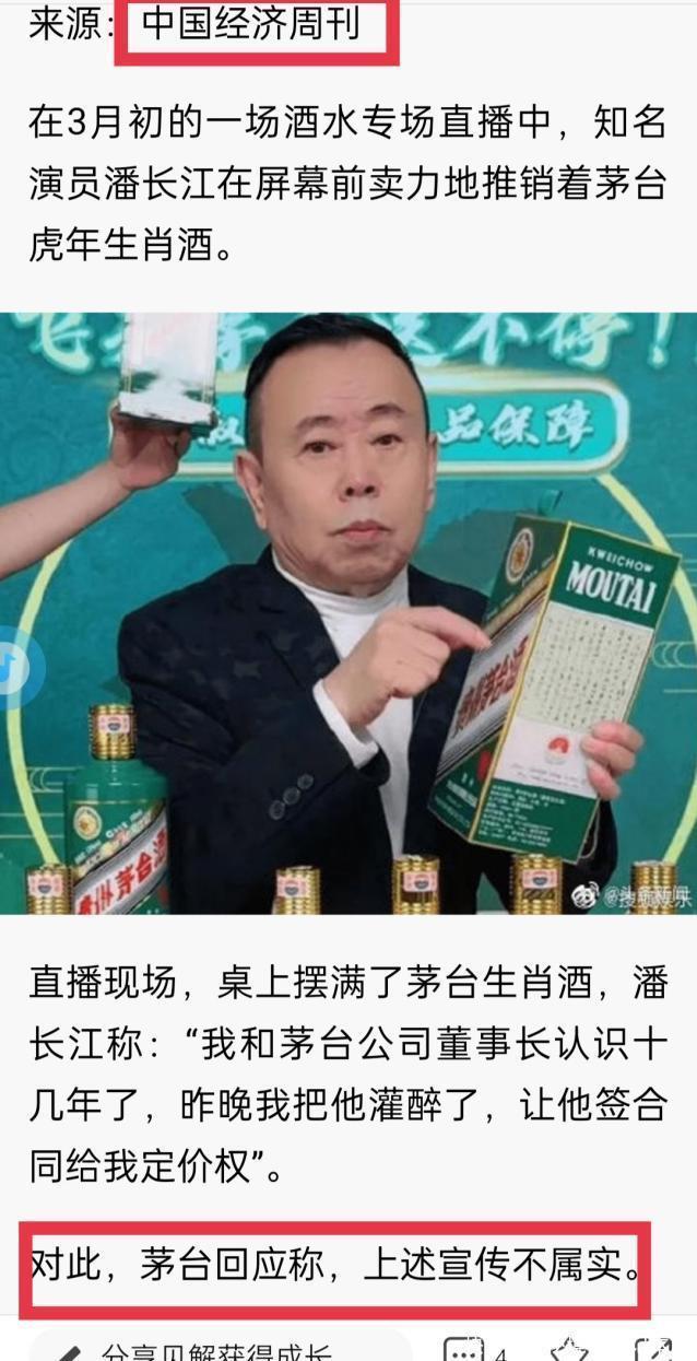 并且还不止这一次,在22年卖茅台生肖酒的时候,就在直播间里声称自己“与茅台董事长认识十几年了,是在把他灌醉之后才拿到的定价权”。 还说这酒的市场价是4万块钱一箱,而他直播间只要2万块一箱,但实际上,这个酒的市场价仅为4500元每瓶,在潘长江的直播间却卖到了4799元每瓶。