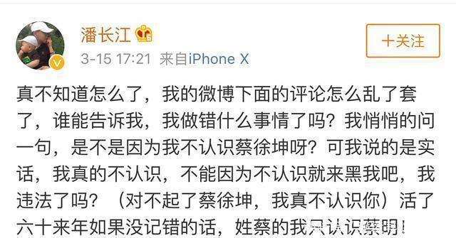 直到2019年,潘长江在综艺节目《王牌对王牌》上,被问到蔡徐坤的时候,坦诚的表示自己不认识,但也就是这句话,在网络上引起了轩然大波。 蔡徐坤的粉丝们纷纷指责他“倚老卖老”、“跟不上时代”,但也有不少人觉得他做的并没有错,认识就是认识,不认识就是不认识。